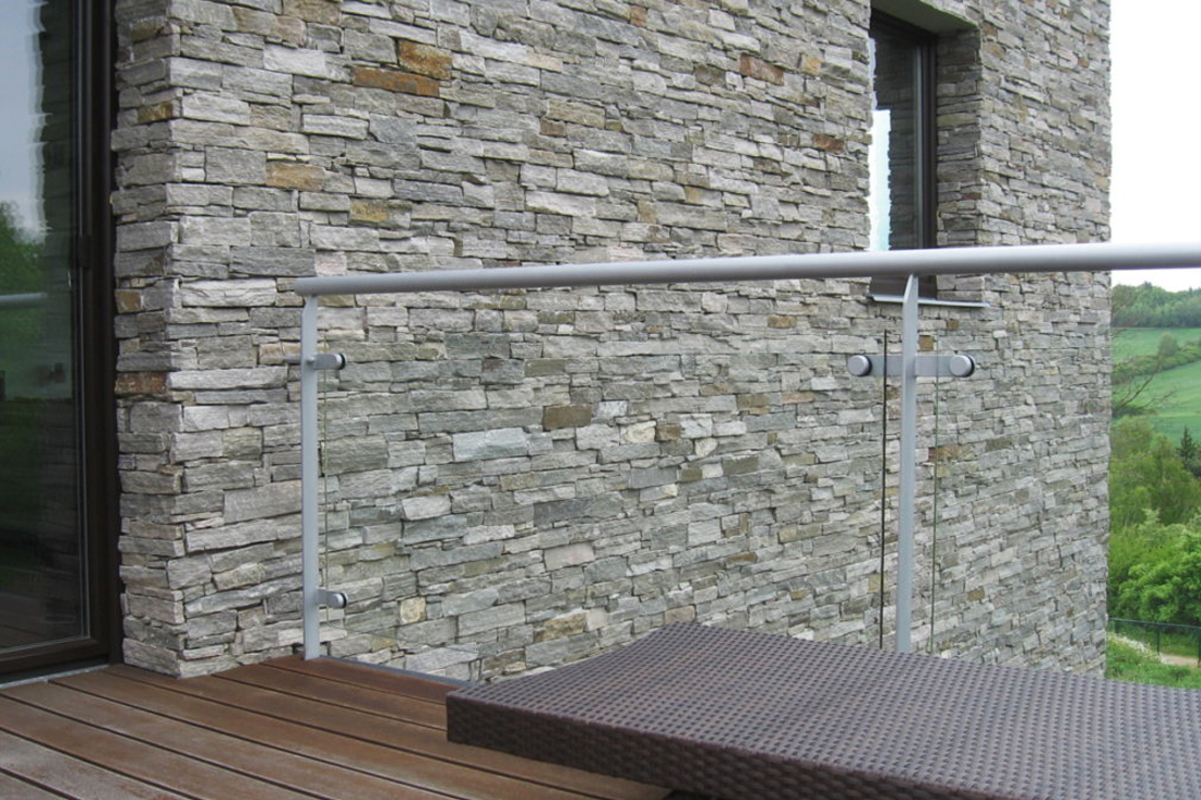 Exteriérové kamenické práce na klíč. Provedení fasády rodinného domu ze segmentových obkladů z kamene „Rula Silver“.